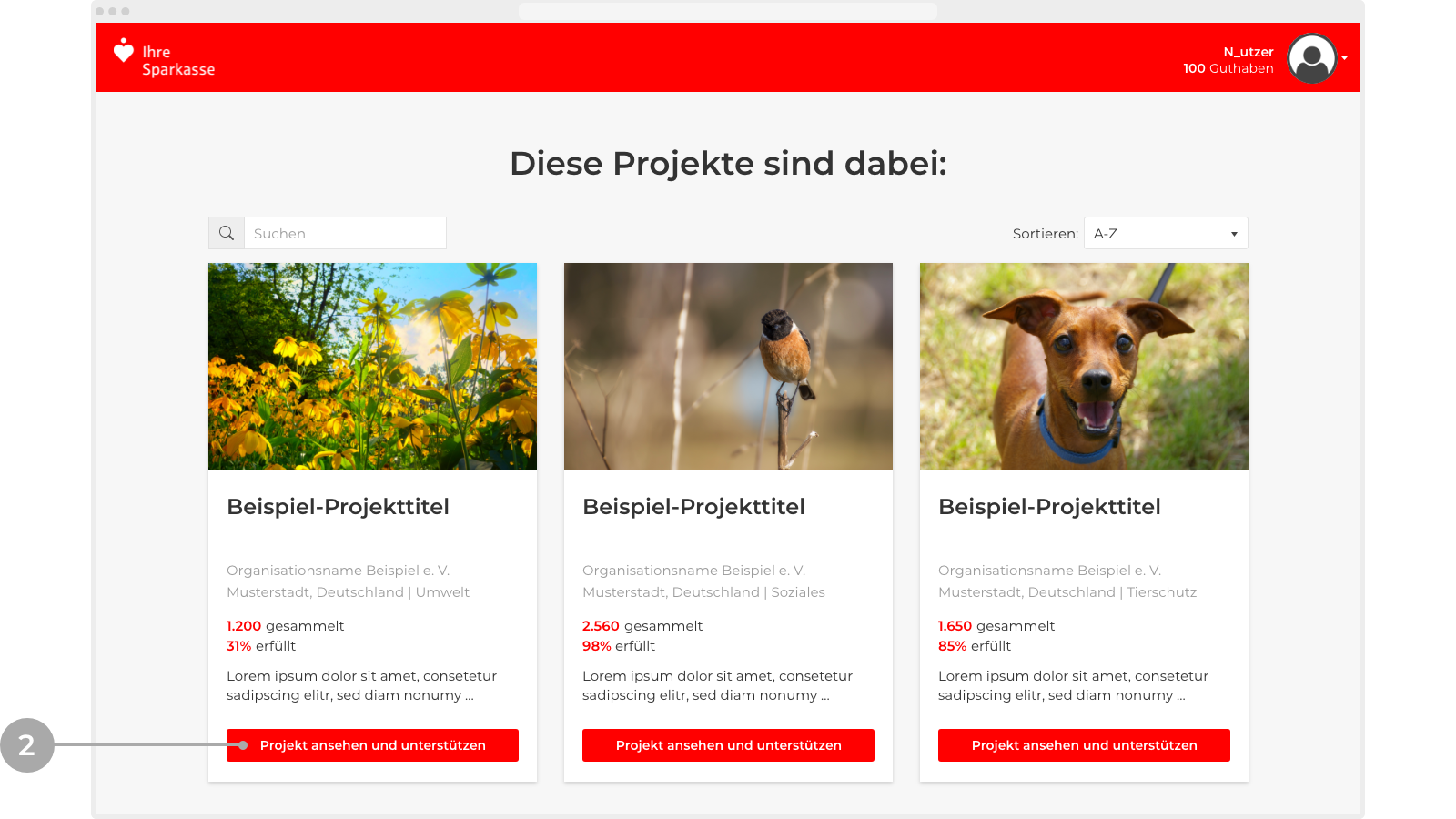 Suchen Sie sich ein Projekt von der Projektübersichtsseite aus, das Sie unterstützen möchten. Klicken Sie dazu auf den Button „Projekt ansehen und unterstützen“. Damit gelangen Sie auf die Detailseite des Projekts.