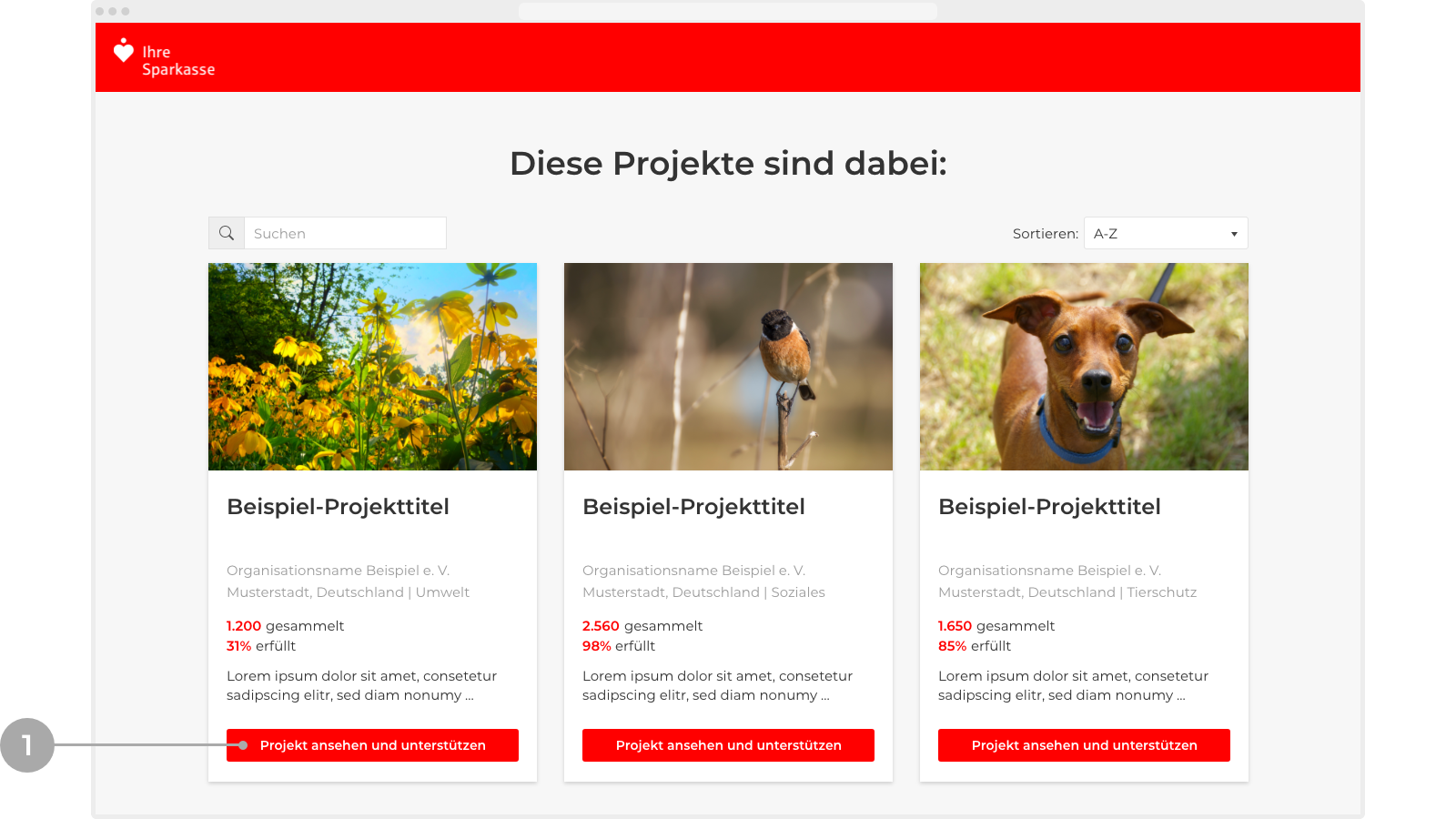 Suchen Sie sich ein Projekt von der Projektübersichtsseite aus, das Sie unterstützen möchten. Klicken Sie dazu auf den Button „Projekt ansehen und unterstützen“. Damit gelangen Sie auf die Detailseite des Projekts.
