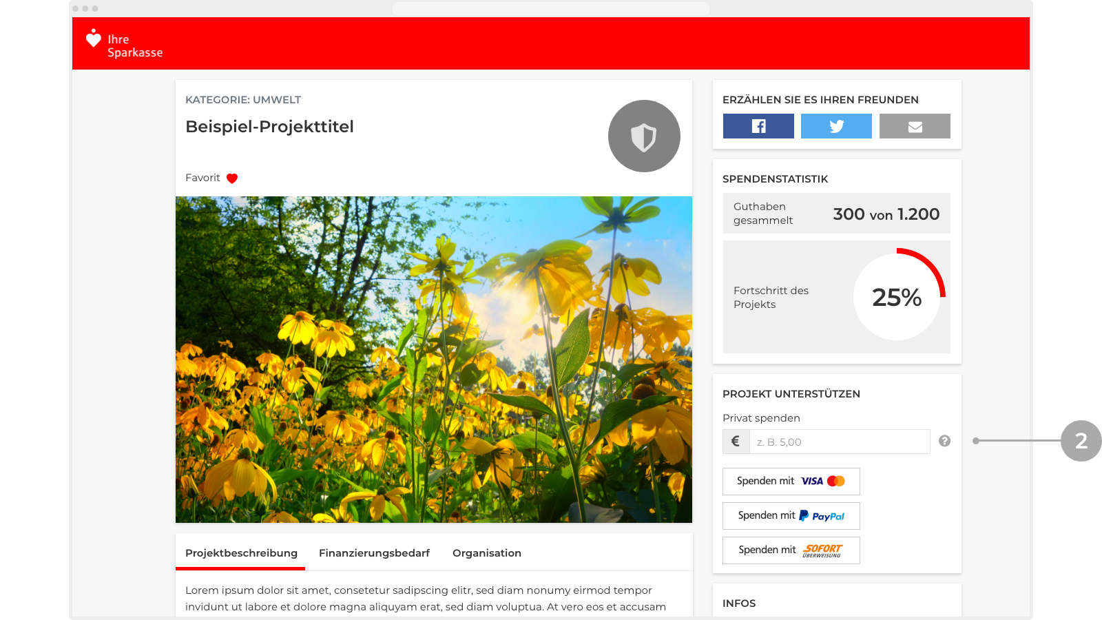 Geben Sie den Betrag ein, mit dem Sie das Projekt unterstützen möchten. Füllen Sie anschließend das Formular mit Ihren Kontaktdaten aus und klicken dann auf den Spendenbutton. Sie werden damit auf die Seite des Zahlungsanbieters weitergeleitet. Dort werden Sie durch den Bezahlvorgang geführt.